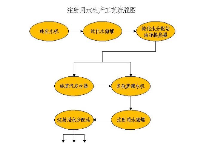 注射用水系统设备完全符合药品生产规范GMP验证要求和《中国药典》标准规定。注射用水为蒸馏水或去离子经蒸馏所制得的水,又称重蒸馏水。为了有效控制微生物污染且同时控制细菌内毒素,纯化水、注射用水系统在设计和制造有两大特点:一是系统中采用消毒/灭菌装置;二是管路分配系统为循环输送水管路。